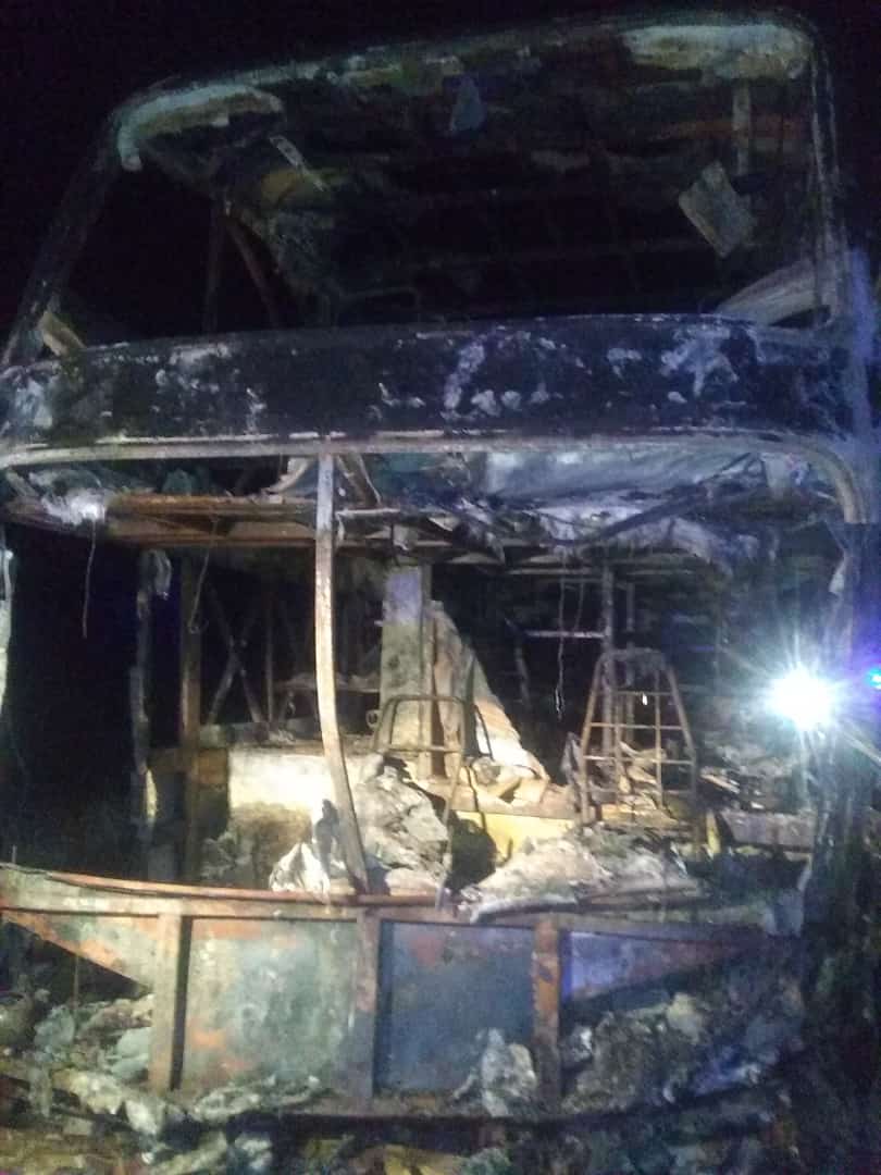 Además, se consignó que al momento del siniestro ambos vehículos se incineraron, pudiendo ser evacuados los ocupantes de colectivo; no así el ocupante del utilitario, quien, en virtud del foco ígneo, pereció en el lugar.