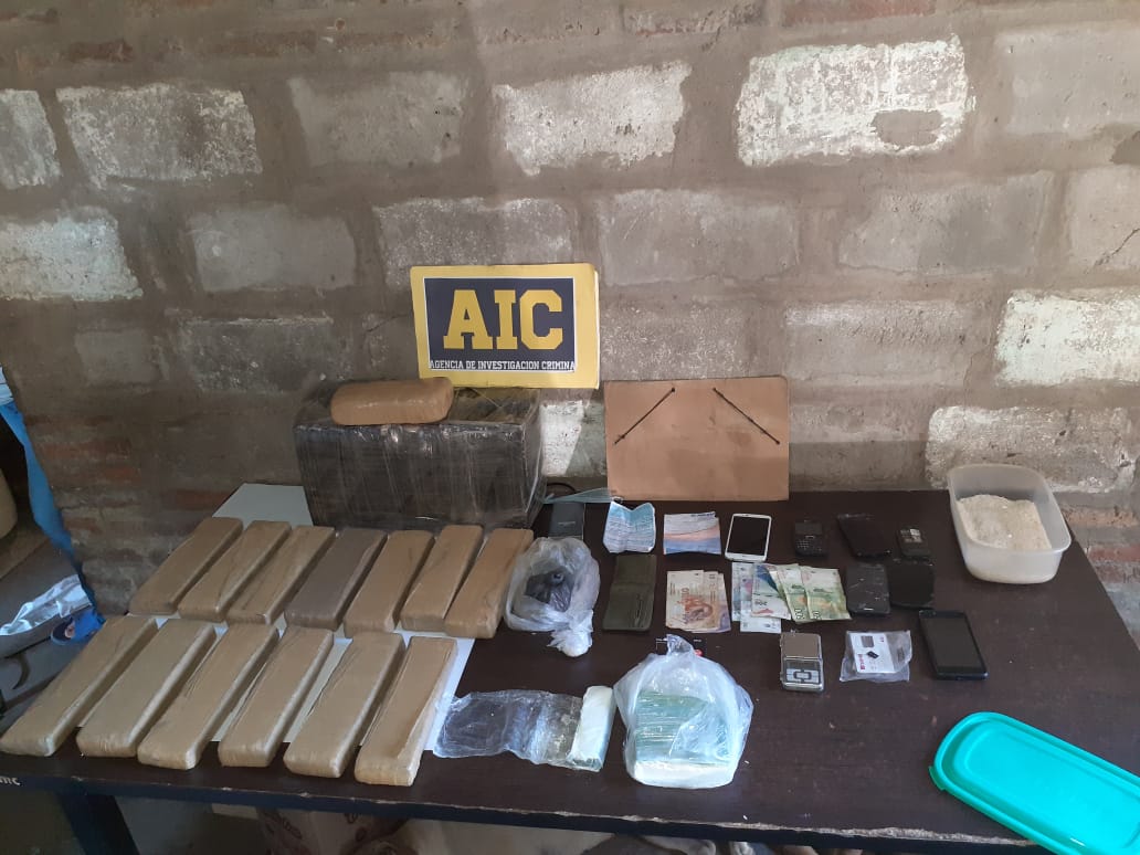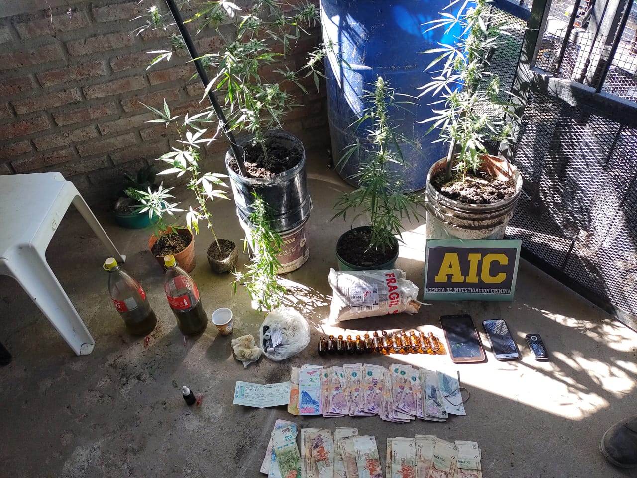 Además, la policía secuestró 42 teléfonos celulares, balanzas digitales de precisión, seis plantas de cannabis sativa, cuatro cuadernos con anotaciones relacionadas a préstamos de dinero, uno auto VW Gol, un Toyota Corolla, una camioneta Toyota Hilux, una moto, y otros elementos.