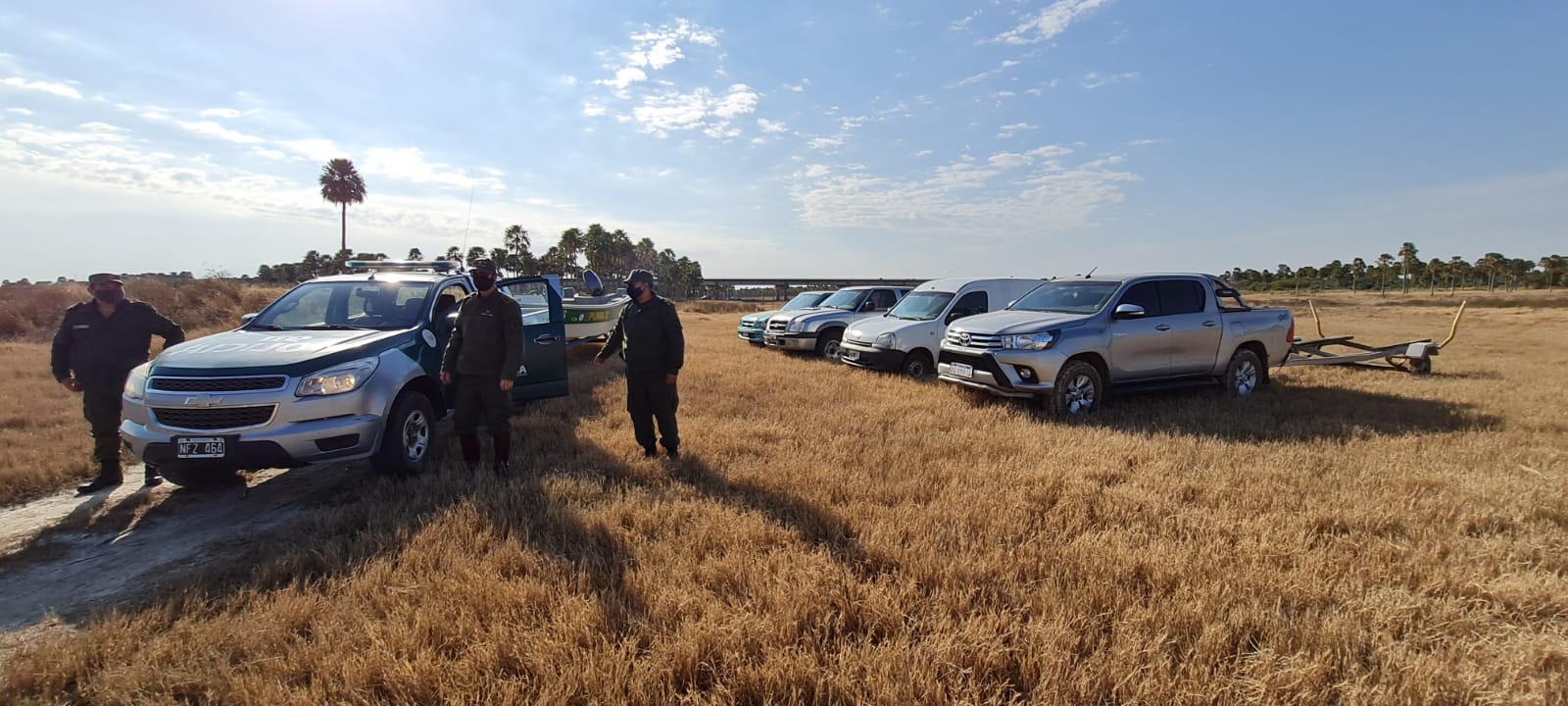 Tres móviles de la policía rural llegaron al lugar con ocho agentes de seguridad rural y aprehendieron a 12 sujetos de Calchaquí a las 15:30 del lunes.