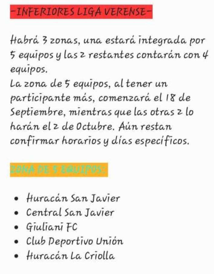 Inferiores de la Liga Verense: el torneo comienza el 18/09