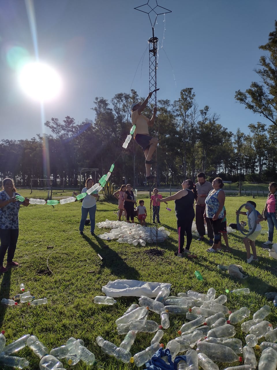 La iniciativa es obra de todos los pobladores del lugar, que mediante el reciclaje de botellas de plástico construyeron el símbolo navideño por excelencia, colaborando de esta forrma con el medio ambiente al reutilizar el material descartable.
