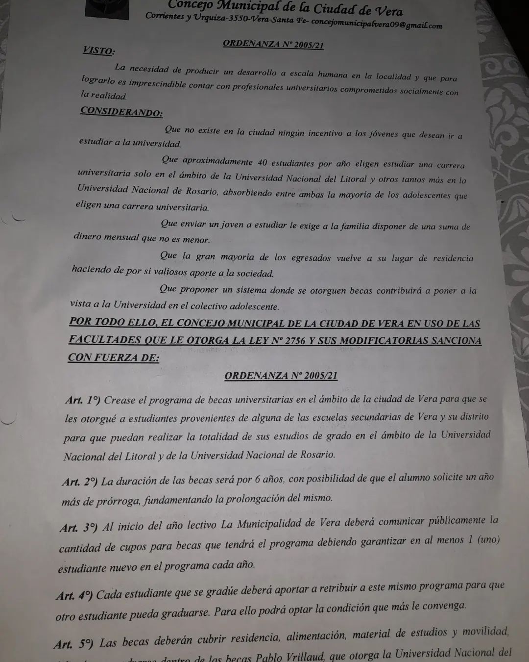 Concejal denunció que el municipio incumple la ordenanza de becas para alumnos verenses