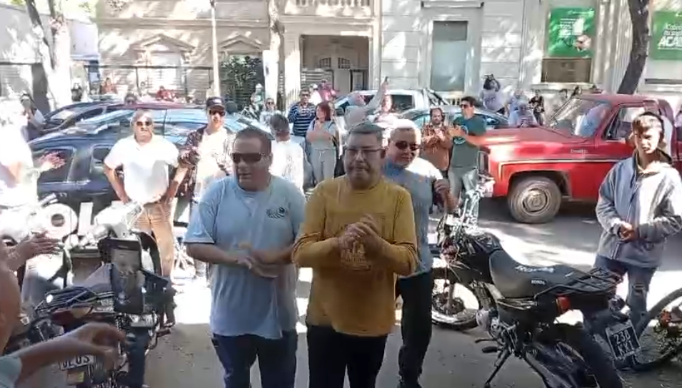 Tras una caravana que partió del barrio La Cortada y pasó por el Palacio de Tribuanales, los compañeros laborales de la víctima se concentraron frente a la Unidad Regional IX de Policía en horas de la siesta para expresar su malestar, bronca y miedo por el suceso policial.