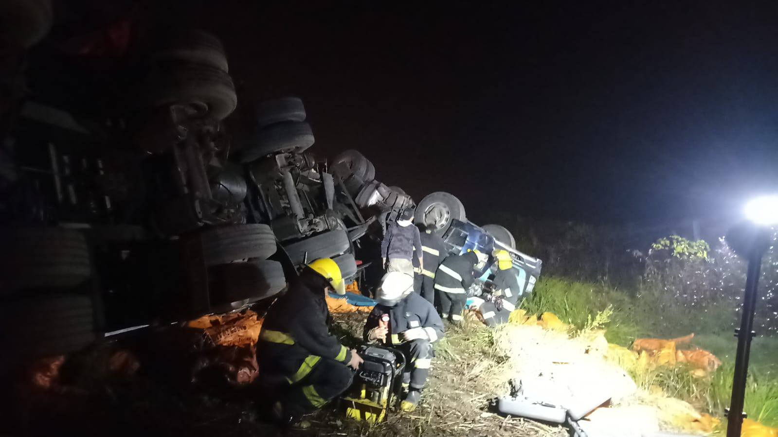 El conductor quedó atrapado en la cabina y bomberos voluntarios de la ciudad de Las Toscas acudieron al lugar para prestar ayuda.