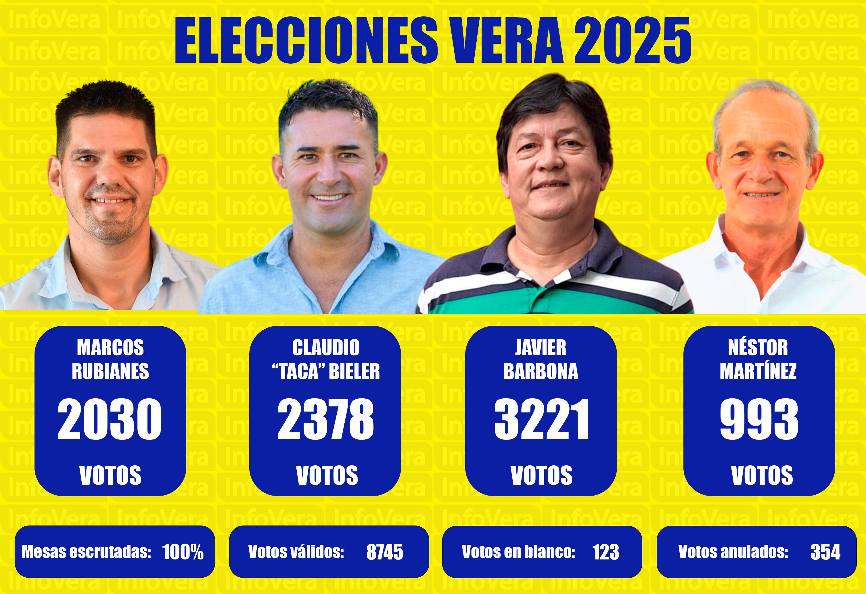 La elección en Vera se definió en favor del candidato de Sumemos Esfuerzos. Más para Santa Fe logró un importante segundo lugar. Unidos terminó tercero, pero alcanzó a meter una banca, aunque perdió una.
