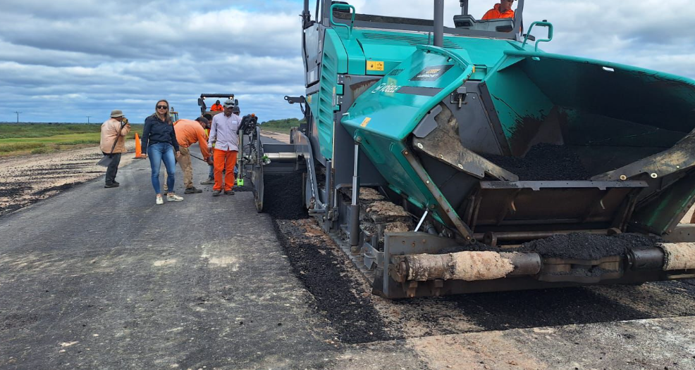 A las dos de la tarde del martes 20 de mayo, la última carga de pavimento fue alisada y compactada en el kilómetro 140 de la Ruta Provincial 3 por las máquinas viales alineadas sobre la traza.