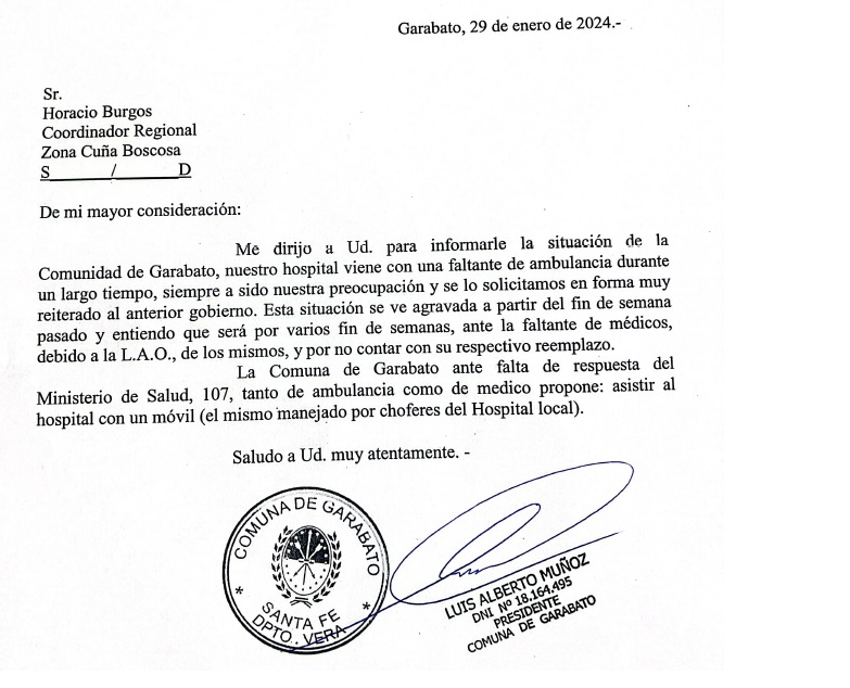 En ese sentido, la Comuna recordó que elevó una nota al Área de Salud el día 29 de enero de 2024, solicitando la designación de un tercer médico para el Hospital.