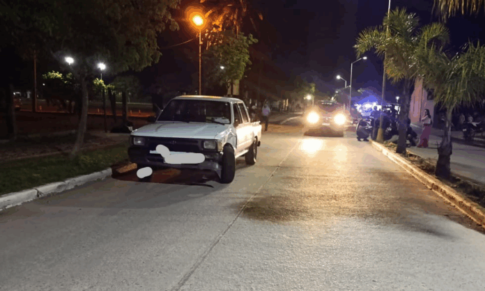 Constituidos en el lugar, y por causas que se tratan de establecer, una camioneta Toyota Hilux, conducida por un joven de 19 años y acompañado por otro de la misma edad, colisionó con una motocicleta Honda Tornado 250 cc, guiada por un joven de 18 años y acompañado por otro masculino también de 18 años.