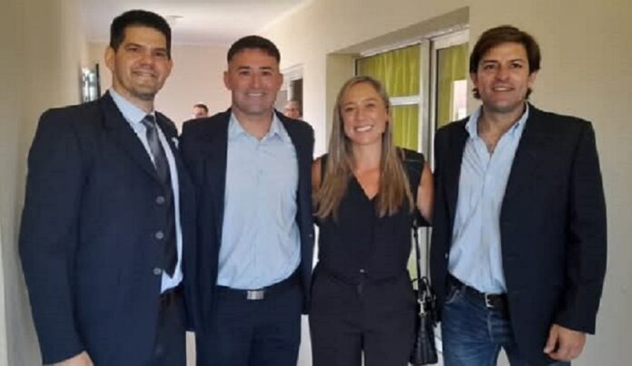 En en contexto, posaron para la foto el nuevo núcleo político conformado por los ediles Marcos Rubianes, Federico Moral, Claudio Bieler, y la subsecretaria de Asuntos Electorales de la provincia, Juliana Caillat.