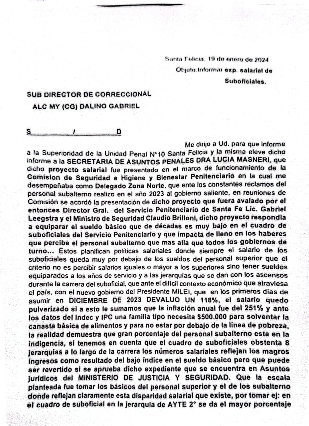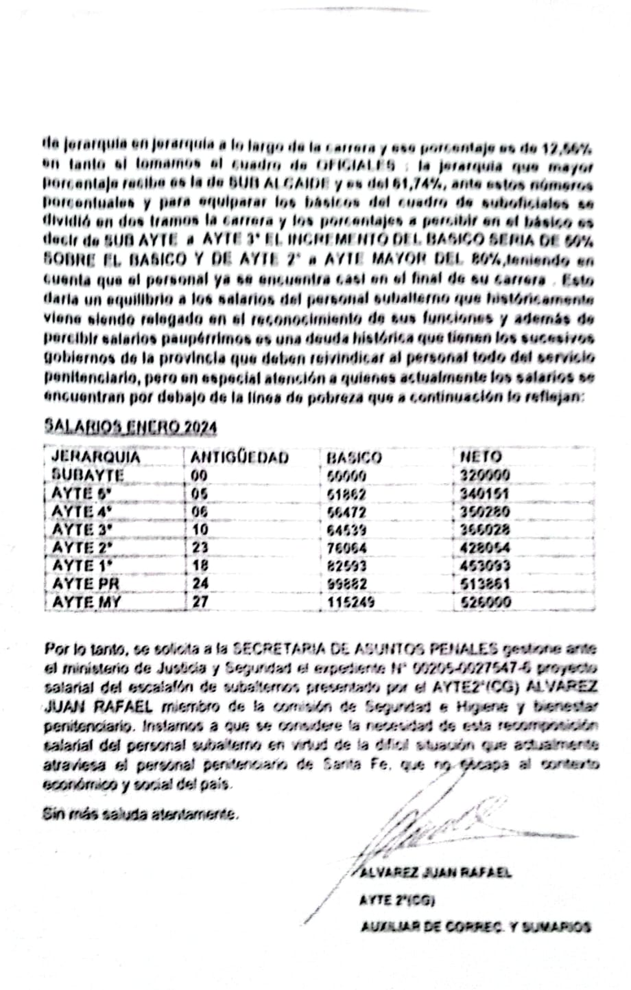 RECLAMO FORMAL DEL PERSONAL DEL SERVICIO PENITENCIARIO PROVINCIA DE SANTA FE
