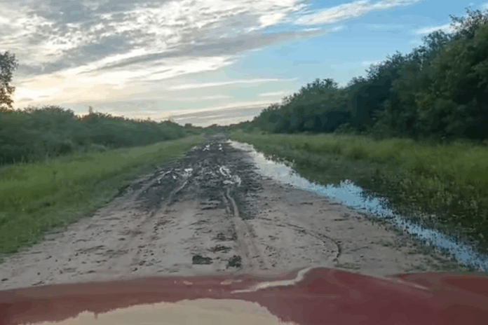 Rutas de calzada natural -como la 30 en el extremo norte- se vuelven intransitables, con sectores donde el agua corta la traza e impide el paso.