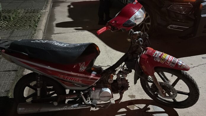La motocicleta fue identificada como una Corven Energy 110 cc, color rojo, presentando numerosas irregularidades: faltante de carenado delantero lateral, ausencia de guardabarros, carenados traseros laterales, espejos retrovisores, sistema de luces y dominio no visible.