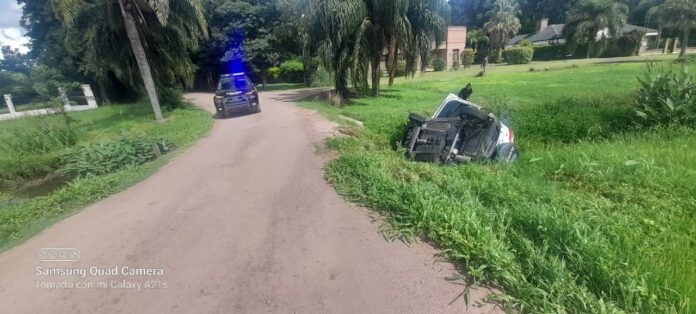 Por causas que se investigan, un automóvil Ford Eco Sport de color blanca, perdió el control y cayó a una zanja, sin intervención de terceros.