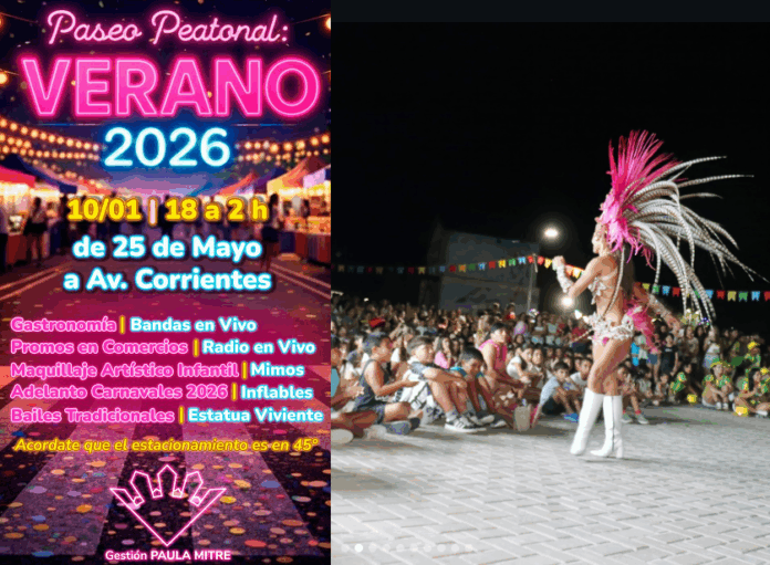 La ciudad de Vera vivirá una nueva propuesta cultural y recreativa con la realización del Paseo Peatonal Verano 2026, que tendrá lugar este sábado 10 de enero, desde las 18 hasta las 2 de la madrugada, sobre calle 25 de Mayo, en el tramo comprendido entre Avenida Corrientes.
