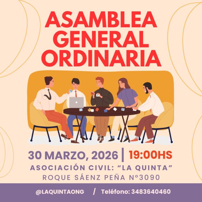 La Comisión Directiva de la Asociación Civil: “Quinta de la Familia Liliane”, con domicilio legal en la ciudad de Vera, Provincia de Santa Fe, convoca a los señores asociados a la Asamblea General Ordinaria, que se celebrará el día LUNES 30 DE MARZO DE 2026, a las 19:00 horas, en la sede social sita en calle Roque Sáenz Peña N° 3090, de esta ciudad, a fin de tratar el siguiente: