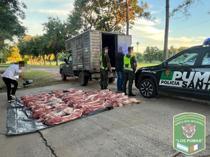 El procedimiento se realizó en zona rural de Avellaneda, luego de que los efectivos recibieran un llamado telefónico anónimo que alertaba sobre el presunto traslado clandestino de carne.