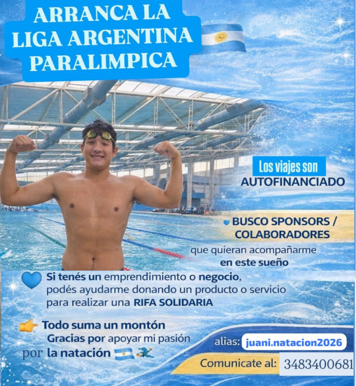 La Natación es una disciplina exigente no solo en lo físico, sino también en lo económico, requiere inversión en equipamiento, inscripciones, traslados y preparación constante. Por eso, hoy la familia apela a la solidaridad de la comunidad para que Juani pueda concretar su participación en la edición 2026 de la Liga Argentina que contará de 5 fechas en todo el País.