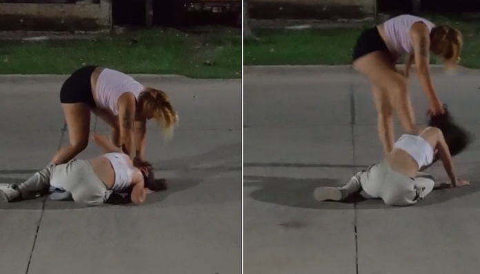En las imágenes, que llegaron a la redacción de InfoVera, se escucha y observa a la agresora increpar a la víctima mientras la golpea y no le permite levantarse.