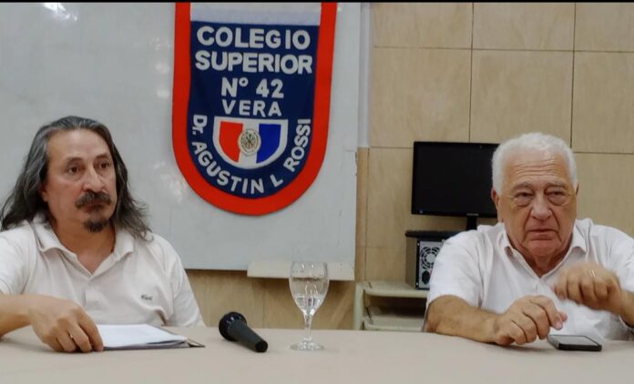 El regente del Colegio Superior Nº 42 “Dr. Agustín Luis Rossi”, profesor Miguel Gómez, junto al senador Osvaldo Sosa anunció la realización del “7mo. Congreso de Educación del departamento Vera”.