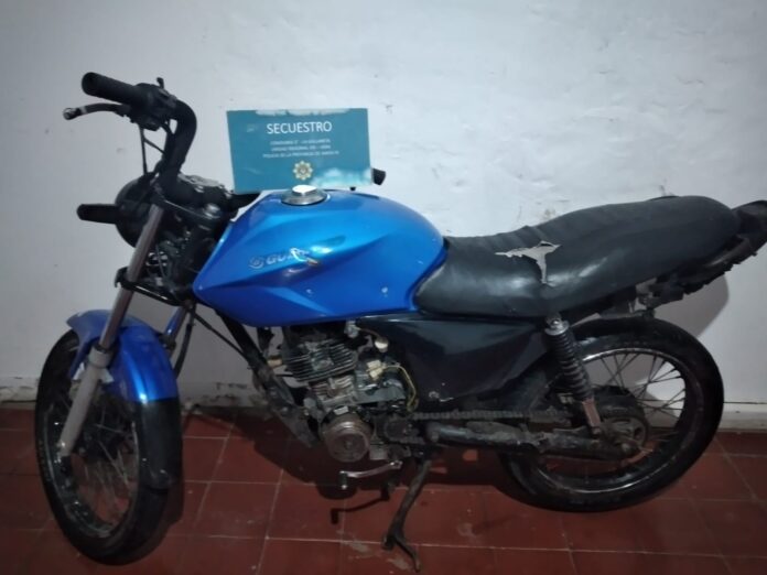 En el procedimiento se procedió al secuestro preventivo de la motocicleta, tratándose de una Guerrero 150 cc, color azul y negro, sin dominio visible y con motor marca Honda Titán.