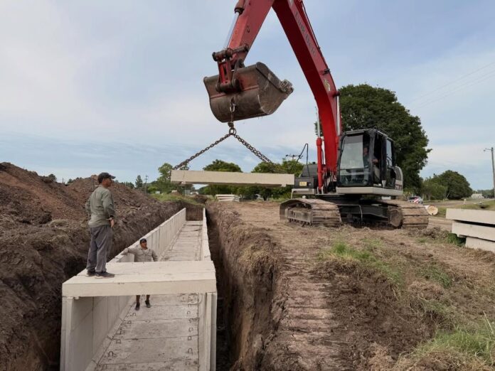 En paralelo, se finalizó la limpieza de 8 kilómetros del colector Nº 13 y se ejecutan cinco alcantarillas tipo túnel liner bajo las rutas provinciales Nº 98 y la Ruta Nacional Nº 11, obras que permiten mejorar la conducción del agua y optimizar el funcionamiento del sistema de drenaje.