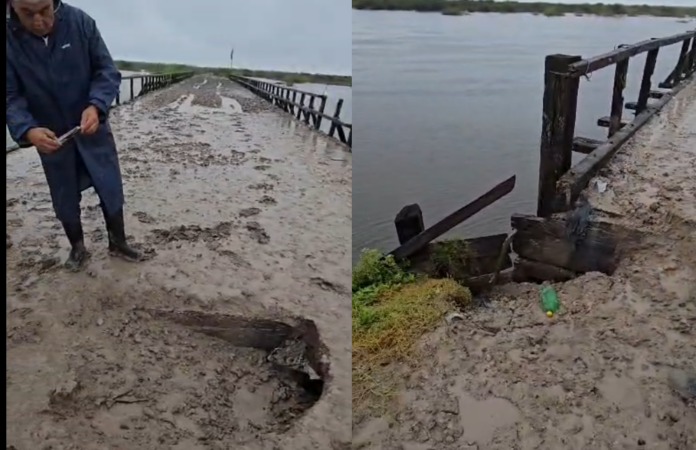 El vetusto viaducto presenta socavones en su traza. Es consecuencia de las lluvias y el tránsito constante de animales evacuados. Piden intervención urgente para su reparación.
