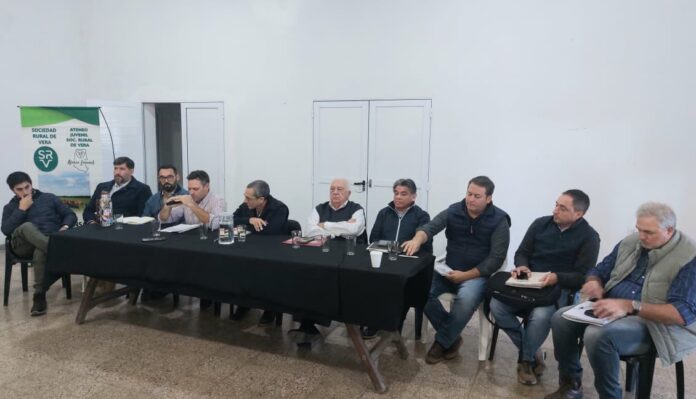 De la reunión celebrada en el predio de la Sociedad Rural de Vera participaron Ignacio Mántaras, Secretario de Agricultura y Ganadería, Facundo Méndez, Director de Ganadería y Sanidad Animal; Nicolás Mijich, Secretario de Asuntos Hídricos,; Marcos Escajadillo, Secretario de Protección Civil, Sergio Raúl Cardozo, Subadministrador de la Dirección Provincial de Vialidad – Zona Norte; Senador Osvaldo Sosa; Diputado Sergio Rojas, presidente y vice de la SR Carlos Chamorro y Sebastián Volkart, la intendente de Vera, Paula Mitre, el intendente de Calchaquí Rubén Cuello y presidentes comunales del interior departamental.