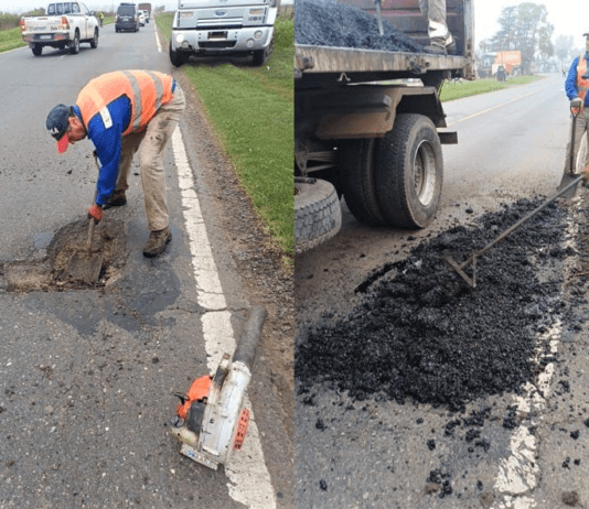 Bacheos de Vialidad Nacional en la Ruta 11, entre Candioti y Nelson
