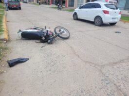 Accidente de tránsito en Calchaquí: colisión entre un auto y una moto