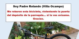 El padre Rolando pide ayuda a la comunidad para recuperar la bici que le robaron