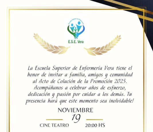 Invitan al acto de colación de egresados 2025 de la Escuela de Enfermería de Vera