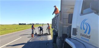 Vialidad Nacional realiza bacheos en la Ruta 11, entre San Justo y Crespo
