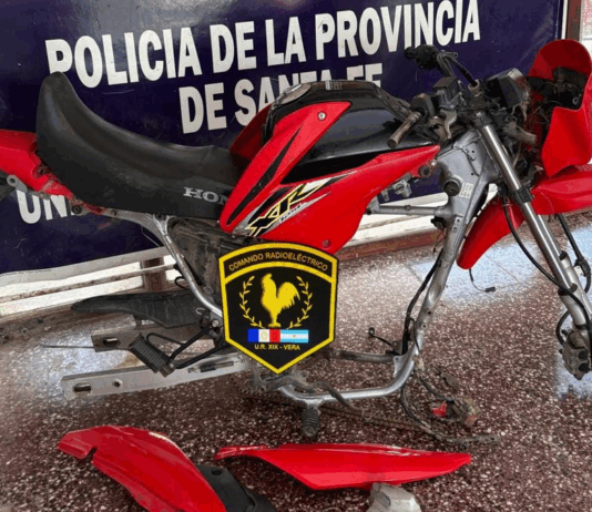 Vera: hallaron una moto robada desarmada entre pastizales de la Ruta…