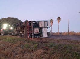 Luego de varias horas pudieron retirar el acoplado volcado en la Ruta 11
